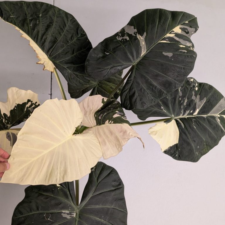 In variegierten Formen zeigen sie beeindruckende, pinselstrichartige Muster aus Weiß, Creme und Grün, die ihre auffälligen Blattadern noch stärker betonen.