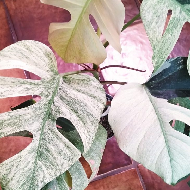 Da die weißen Blattbereiche kein Chlorophyll enthalten, wachsen diese Pflanzen etwas langsamer und empfindlicher als rein grüne Monsteras – und sind deshalb bei Sammlern so geschätzt.